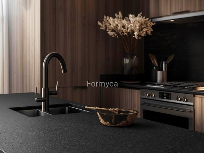 Na zdjęciu: Blat kuchenny szczotkowany z czarnego granitu Absolute Black