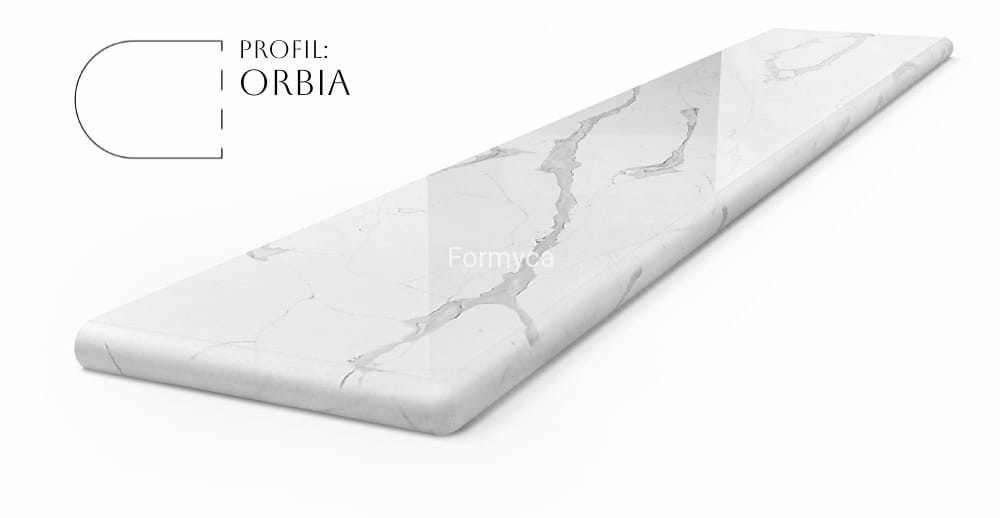 Odkryj niepowtarzalne piękno i wytrzymałość naszego ekskluzywnego parapetu wykonanego z kwarcu Calacatta Venato.
