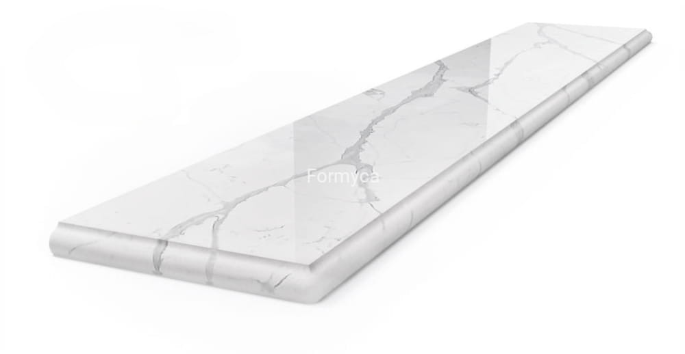 Zachwyć się niepowtarzalnym urokiem i wytrzymałością naszego parapetu kwarcowego Calacatta Quartz Venato z frezem ozdobnym ARTE.