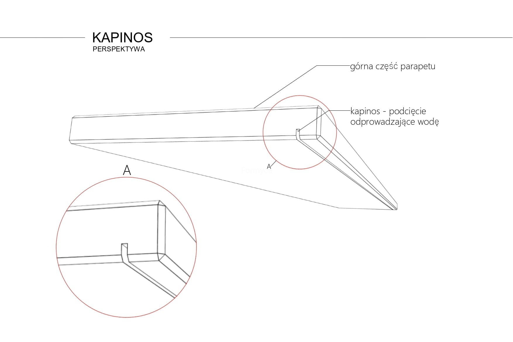 Przód parapetu szlifowany na całej długości.