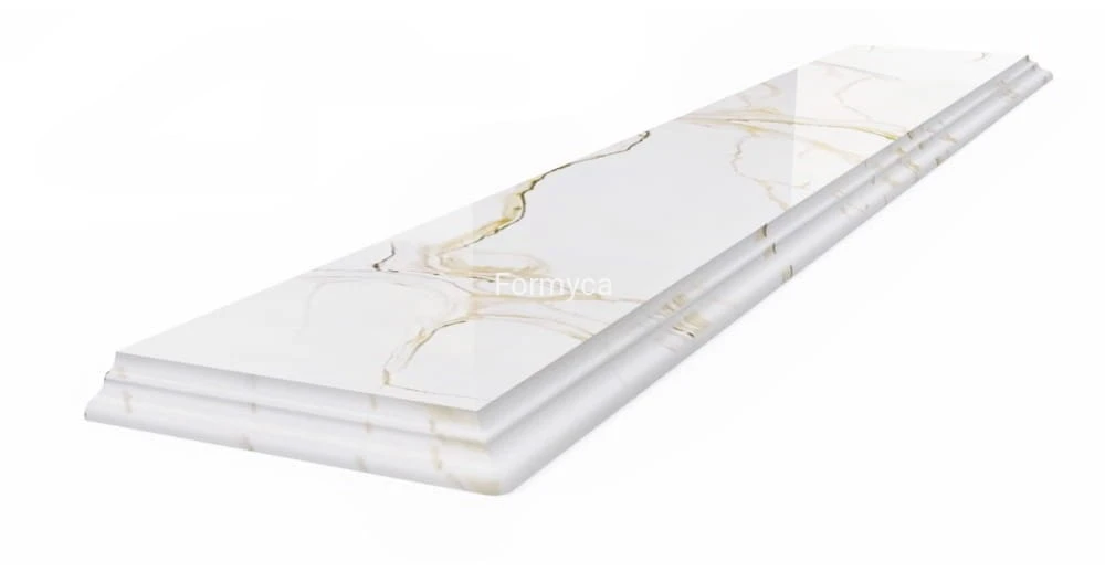Zachwyć się niepowtarzalnym urokiem i wytrzymałością naszego parapetu kwarcowego Formyca Gold z frezem ozdobnym BAROCCO.