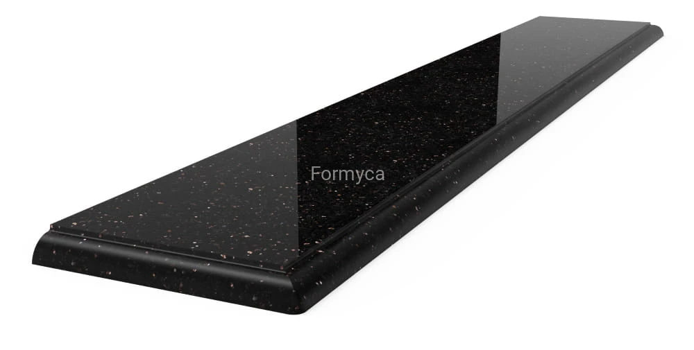 Elegancki Wygląd: Czarna barwa z subtelnie mieniącymi się miedzianymi drobinkami nadaje parapetowi luksusowy i elegancki charakter, który pasuje do każdego wnętrza, od klasycznego po nowoczesne.
